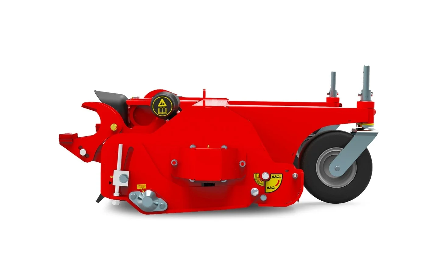 Front semi-pneumatic wheels allow the FlailDek FX to follow contours independently from the tractor.